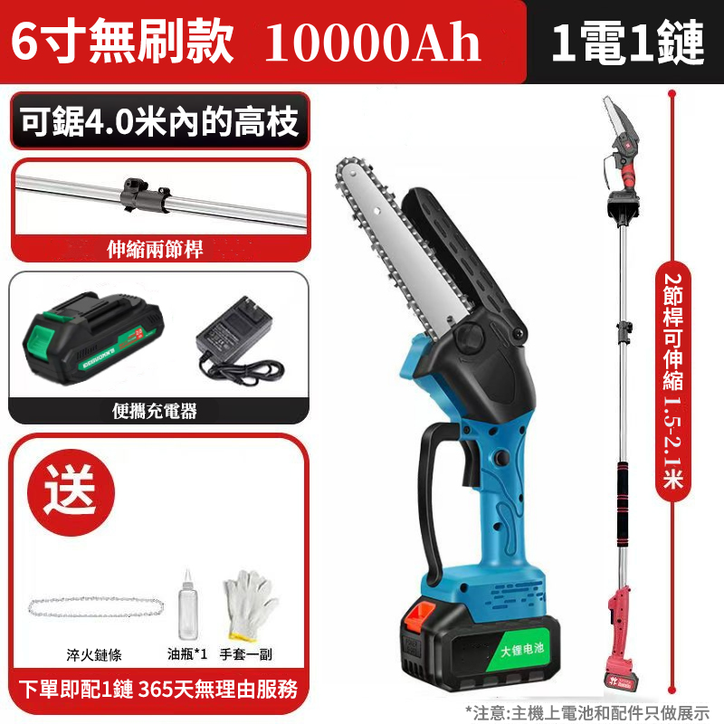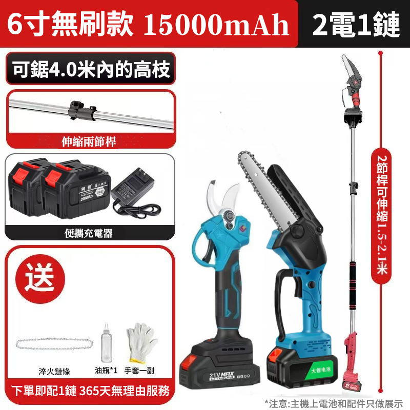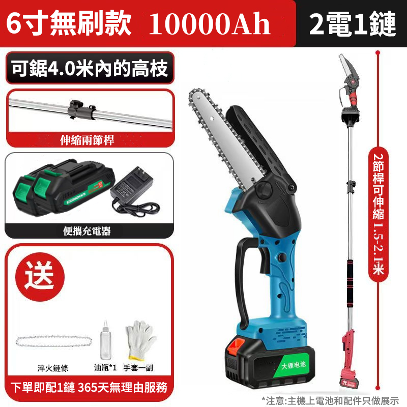可鋸4米伸縮桿+6吋鋰電鏈條鋸僅需2890元
