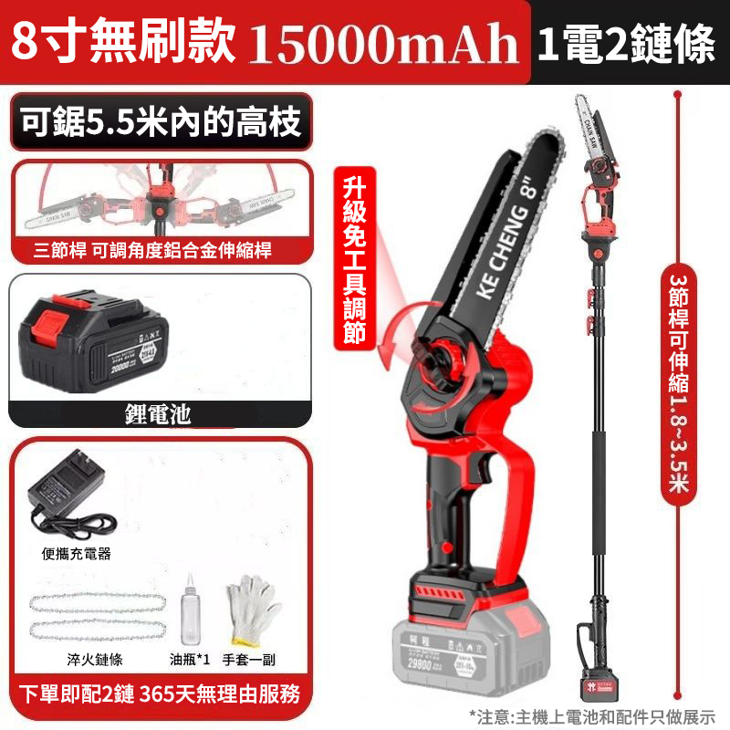 2分鐘前果農修枝好幫手】德國KECHENG進口電動伸縮鋰電鋸-5.5米高枝輕鬆鋸!動力強勁,果園工作不費力! - 可鋸5.5米伸縮桿+8吋鋰電鋸【單電】NT$3790