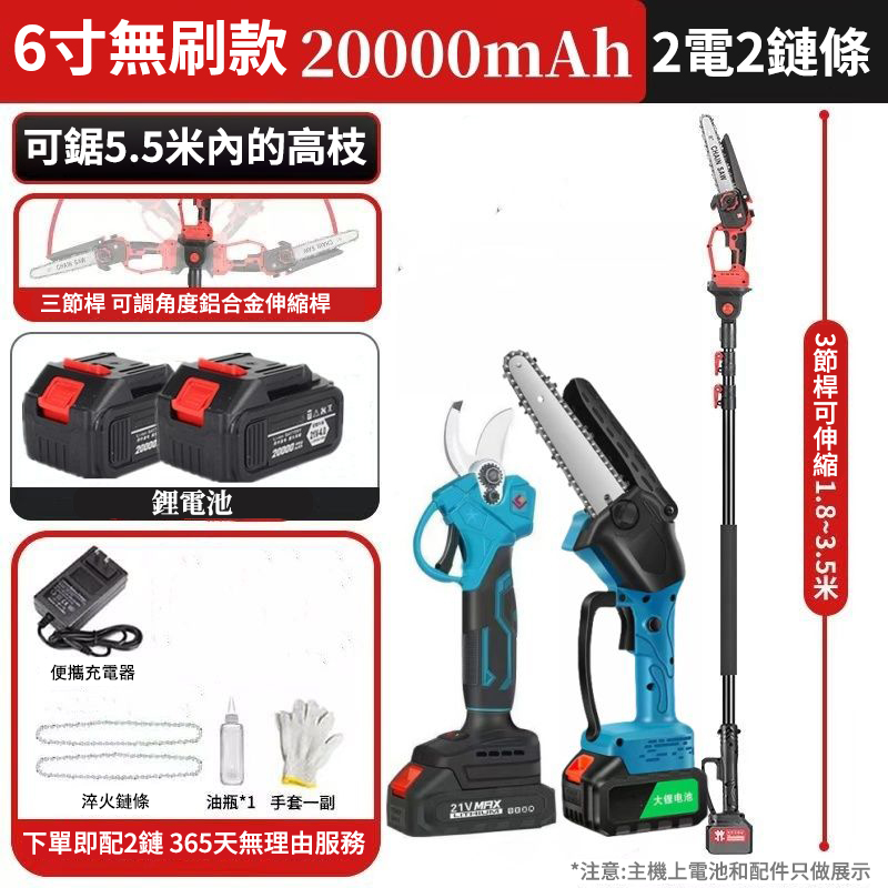 可鋸5.5米伸縮桿+8吋鋰電鏈條鋸僅需3790元
