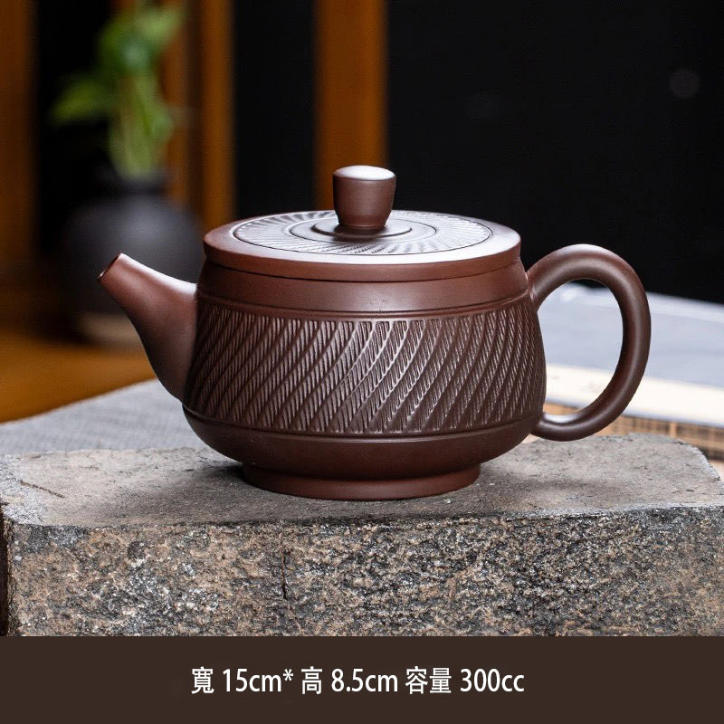 4分鐘前經典傳承・匠心打造|【大師純手工紫陶鳳鳴壺】復古跳刀紋漢瓦壺(一壺兩杯)・黃金大容量300cc + 球孔過濾,鳴音設計顯格調 - 紫陶漢瓦壺【單壺】