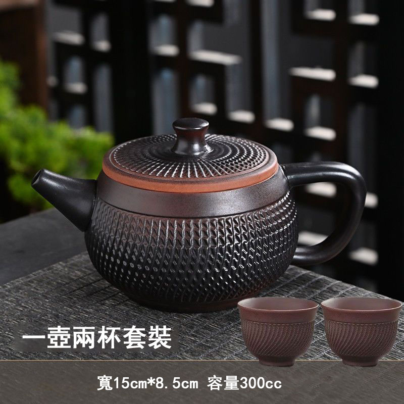 25分鐘前經典傳承・匠心打造|【大師純手工紫陶鳳鳴壺】復古跳刀紋漢瓦壺(一壺兩杯)・黃金大容量300cc + 球孔過濾,鳴音設計顯格調 - 紫陶漢瓦壺【單壺】