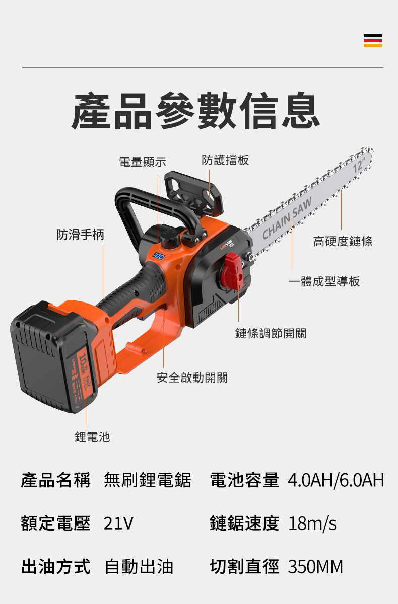 20分鐘前千元直降【東林官方 回饋國人】國民品牌 全新東林12吋鋰電伐木鋸 下訂僅需1980元!最後88組(保固一年 損壞包退換) - 12吋鋰電鋸(10節鋰電池)兩電一充