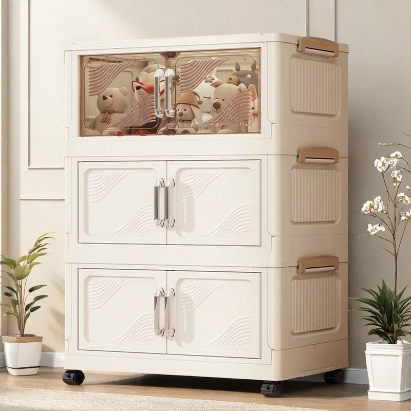 半小時前【新生代的收納選擇】免安裝 加厚多功能收納櫃,雙開門防潮防蟲 不佔空間,適合客廳、臥室或小戶型空間! - 50cm寬面【三層】可折疊+萬向輪NT$1690