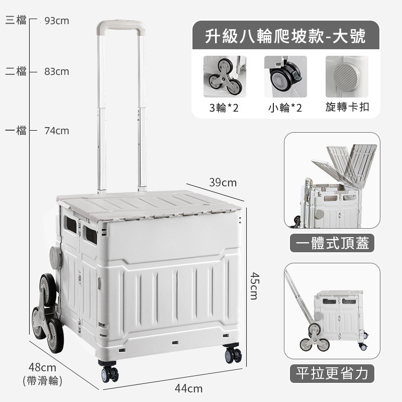 11分鐘前【折疊購物車】買菜購物免提重,爬樓搬運超省力!大容量好收納,露營野餐隨拉隨走,居家外出都好用! - 【八輪爬坡款(大號)】 加厚帶蓋 灰色 NT$2390