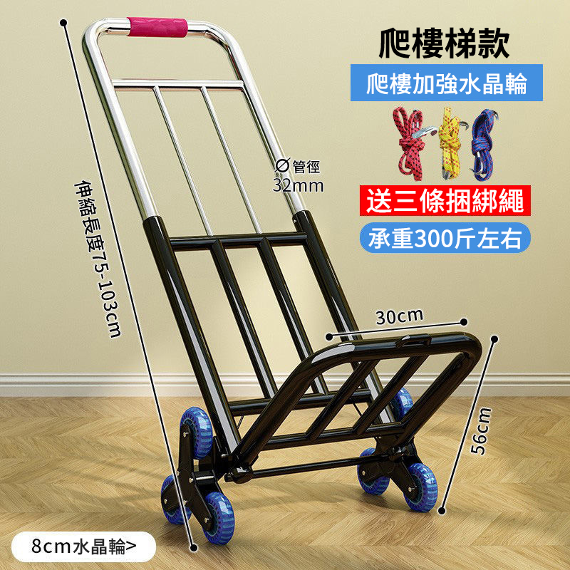 5分鐘前【折疊購物車】買菜購物免提重,爬樓搬運超省力!大容量好收納,露營野餐隨拉隨走,居家外出都好用! - 【搬家爬樓利器】特大號六輪爬樓款+3根捆綁繩 NT$1990