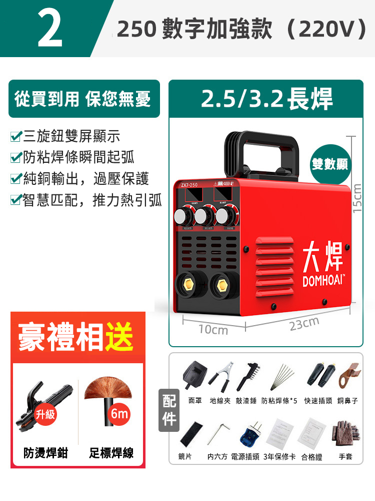 半小時前業內焊機領軍品牌【德國DOMHOAI】全新二代數字化電焊機,瞬間起弧,長焊4.0焊條 - 【250-220V】數字加強款+基礎套餐