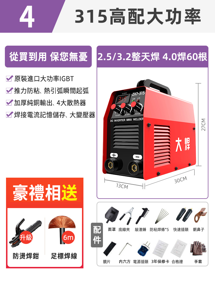 4分鐘前業內焊機領軍品牌【德國DOMHOAI】全新二代數字化電焊機,瞬間起弧,長焊4.0焊條 - 【315-220V/380V】智慧全電壓多板機+2米接地線+4米焊把線+大禮包