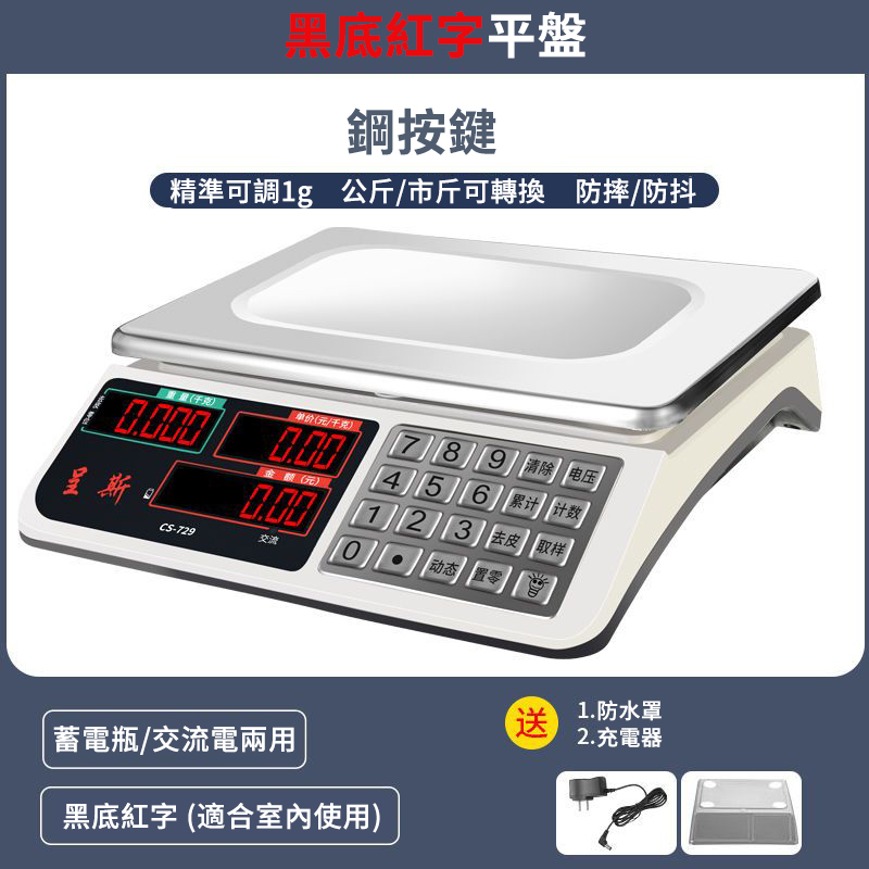 半小時前工廠聯合促銷!僅需千元【台灣省電待機王】德國進口商用電子秤 加厚加固超耐用 精準顯示為生意保駕護航 - 商用款(分度值可達1克)紅字+大平盤